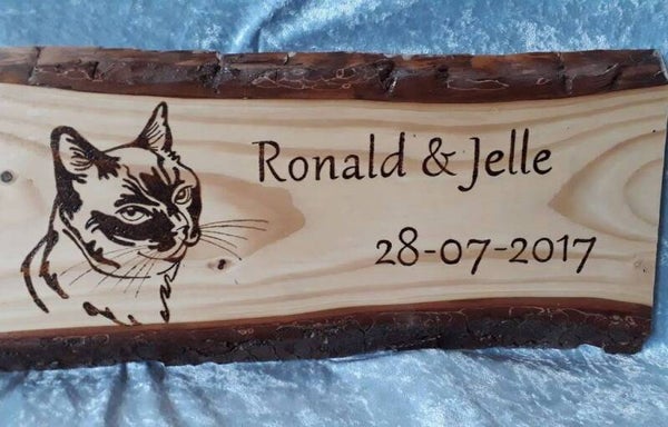 Prachtige houten naamborden, gebrand.